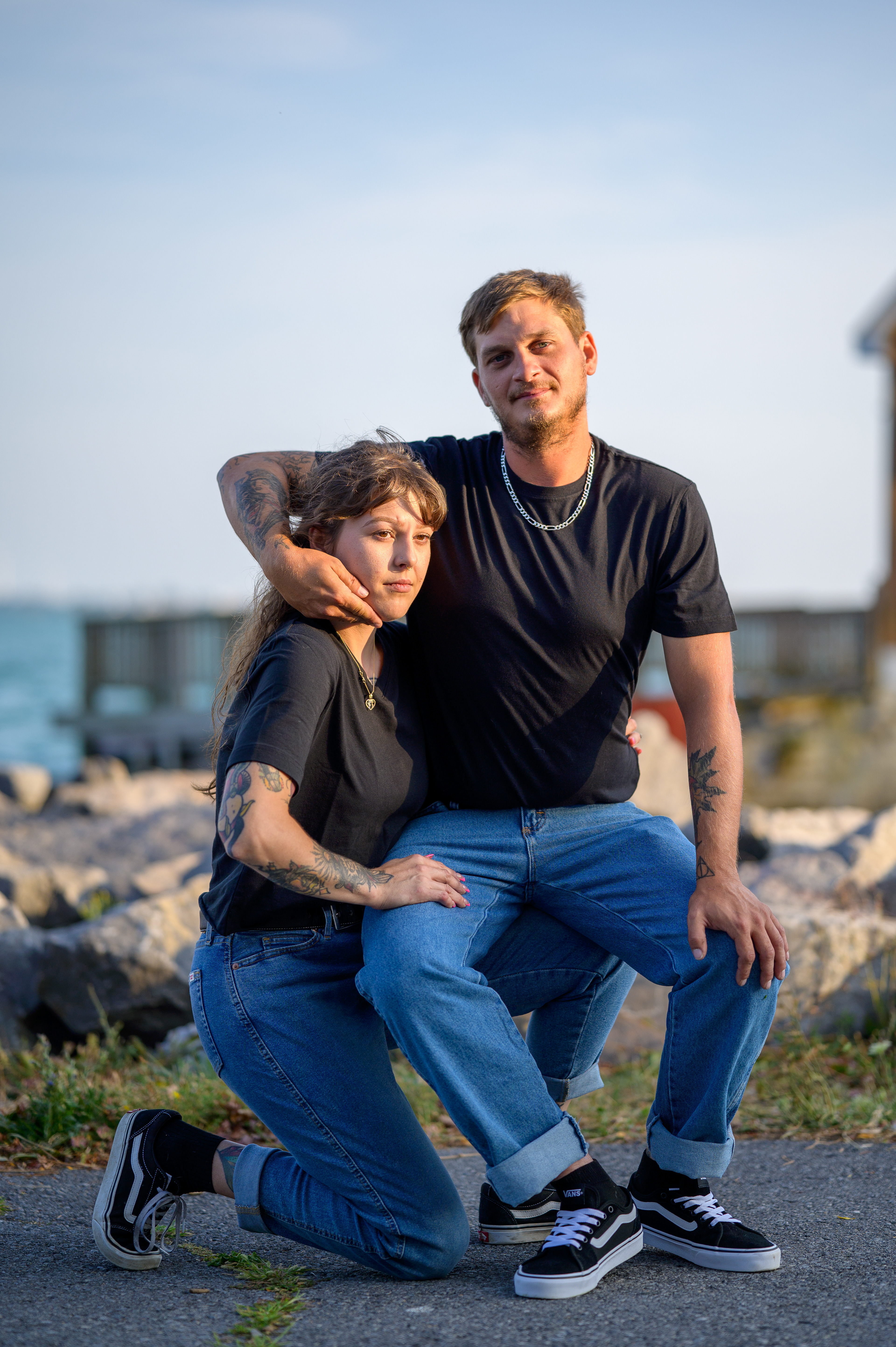 This engagement set is from a "90s clothing ad/awkward photo" themed shoot - so much fun!
